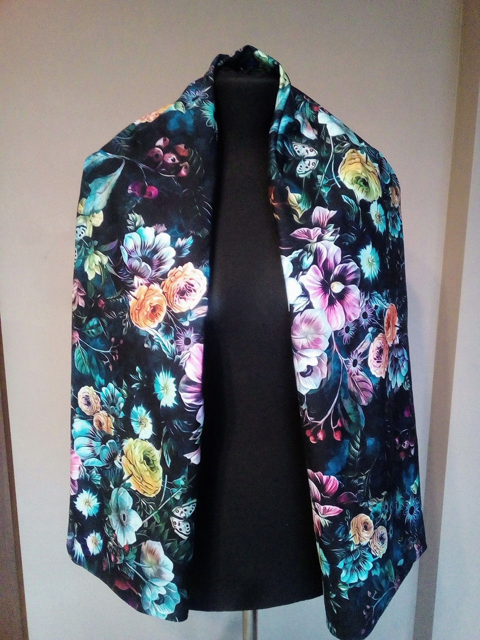 Szal dwustronny damski kwiaty welur morski błękit 50cm x 140cm